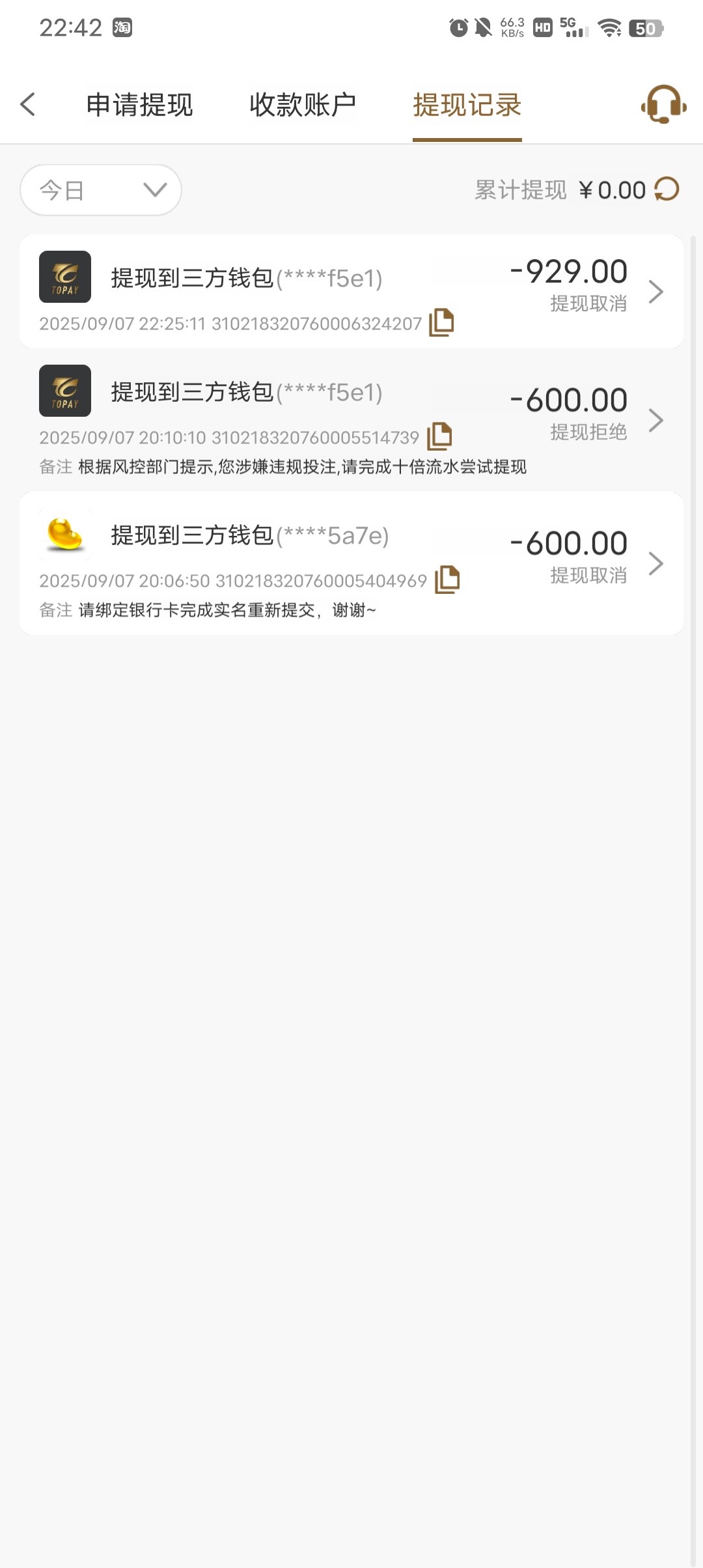 电话特邀送了15打到600,充了50说违规投注罚水10倍,打够了打到930提款封号,找客服也直接关闭对话
