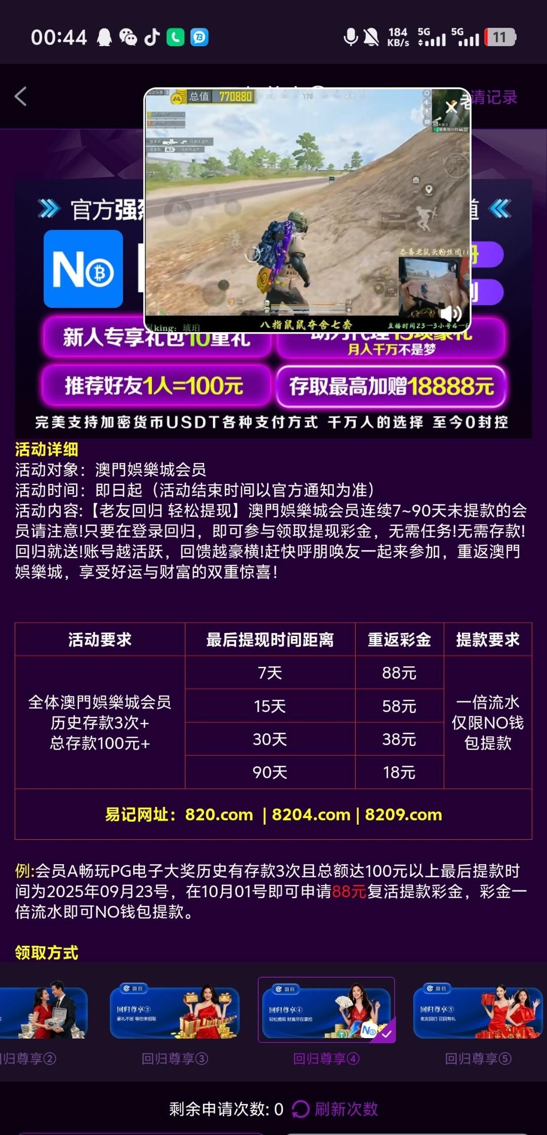 有号并且之前有提现过的去看看 820.com