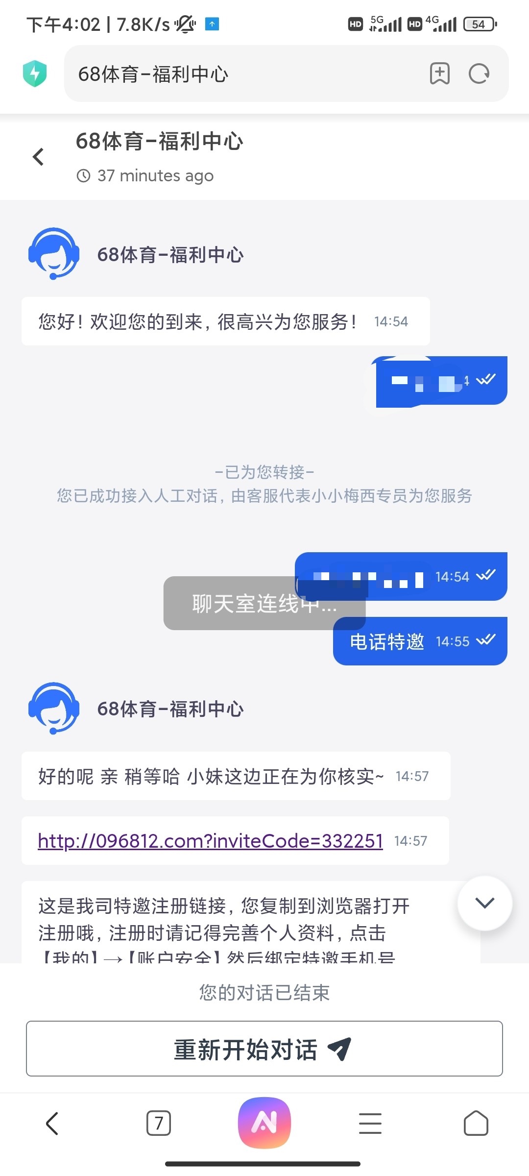 我问客服没碰到电话特邀