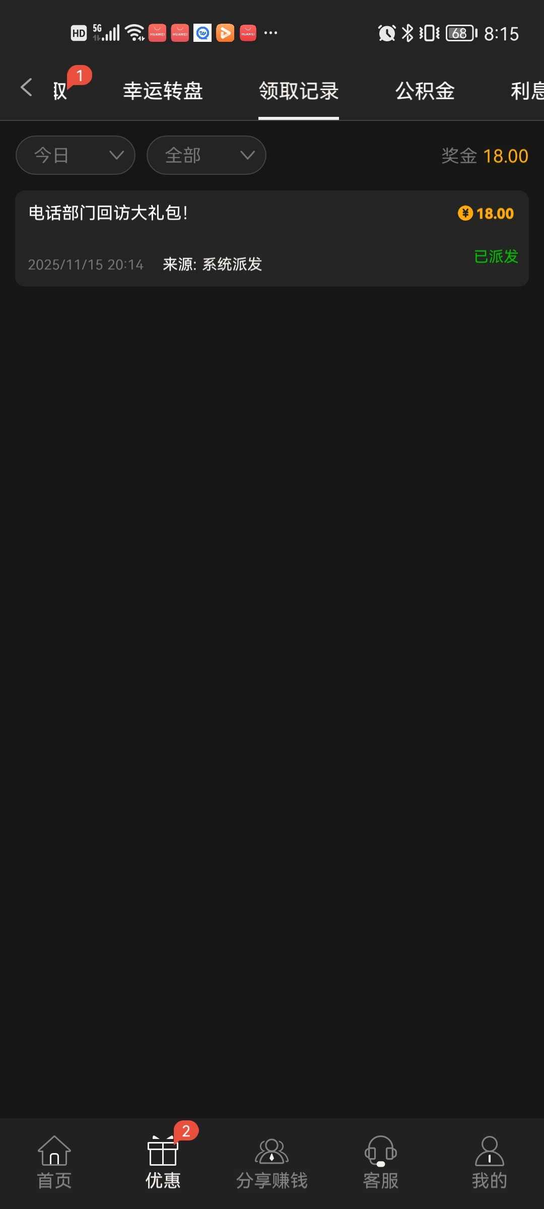 前两天刚注册的 今天就来回访彩金了