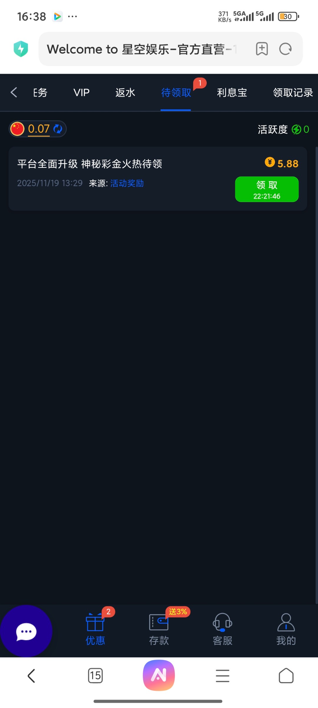 【星空娱乐回馈】