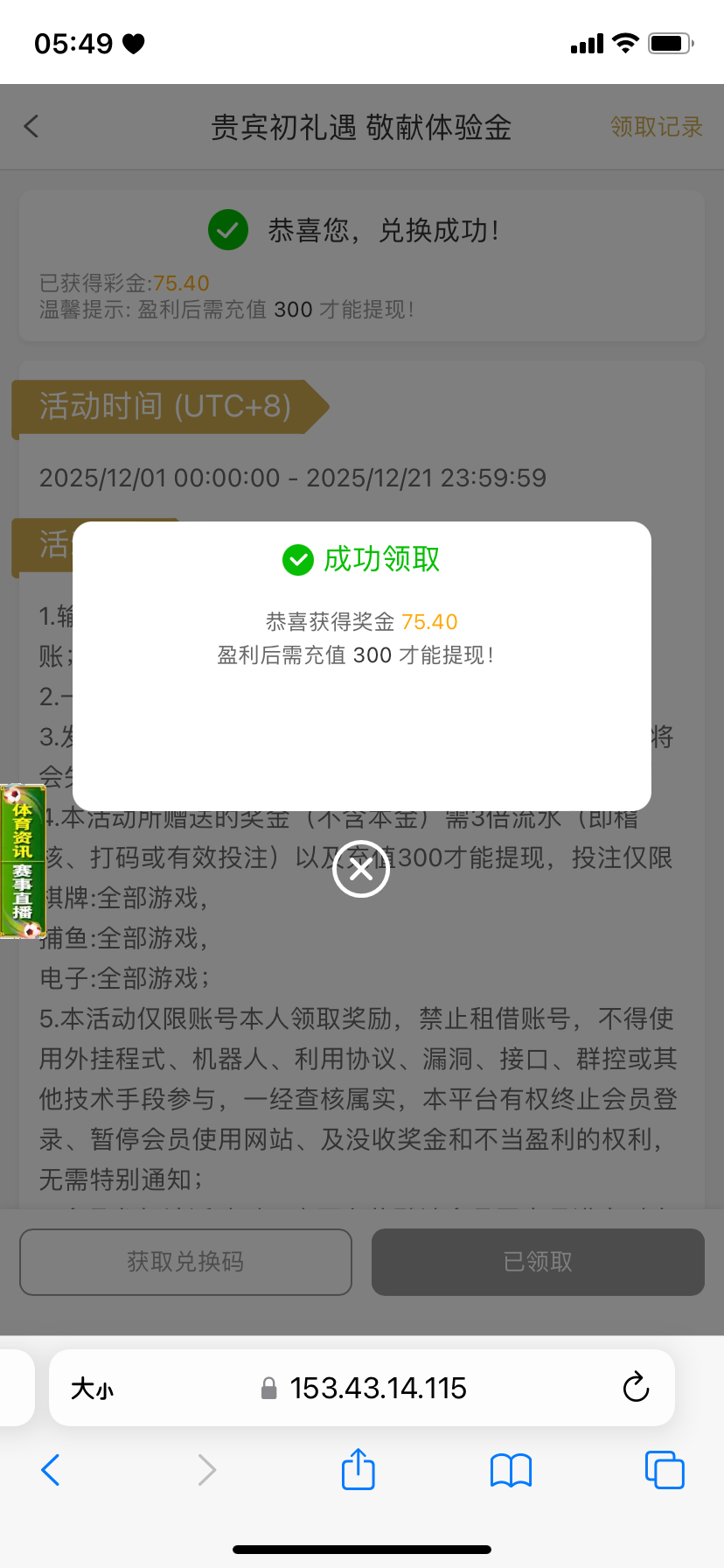 你们和我说的就不是一个活动,特邀送8元那里没有要求充值300吧?你们去申请暖冬彩金,那个本来就是有要求的