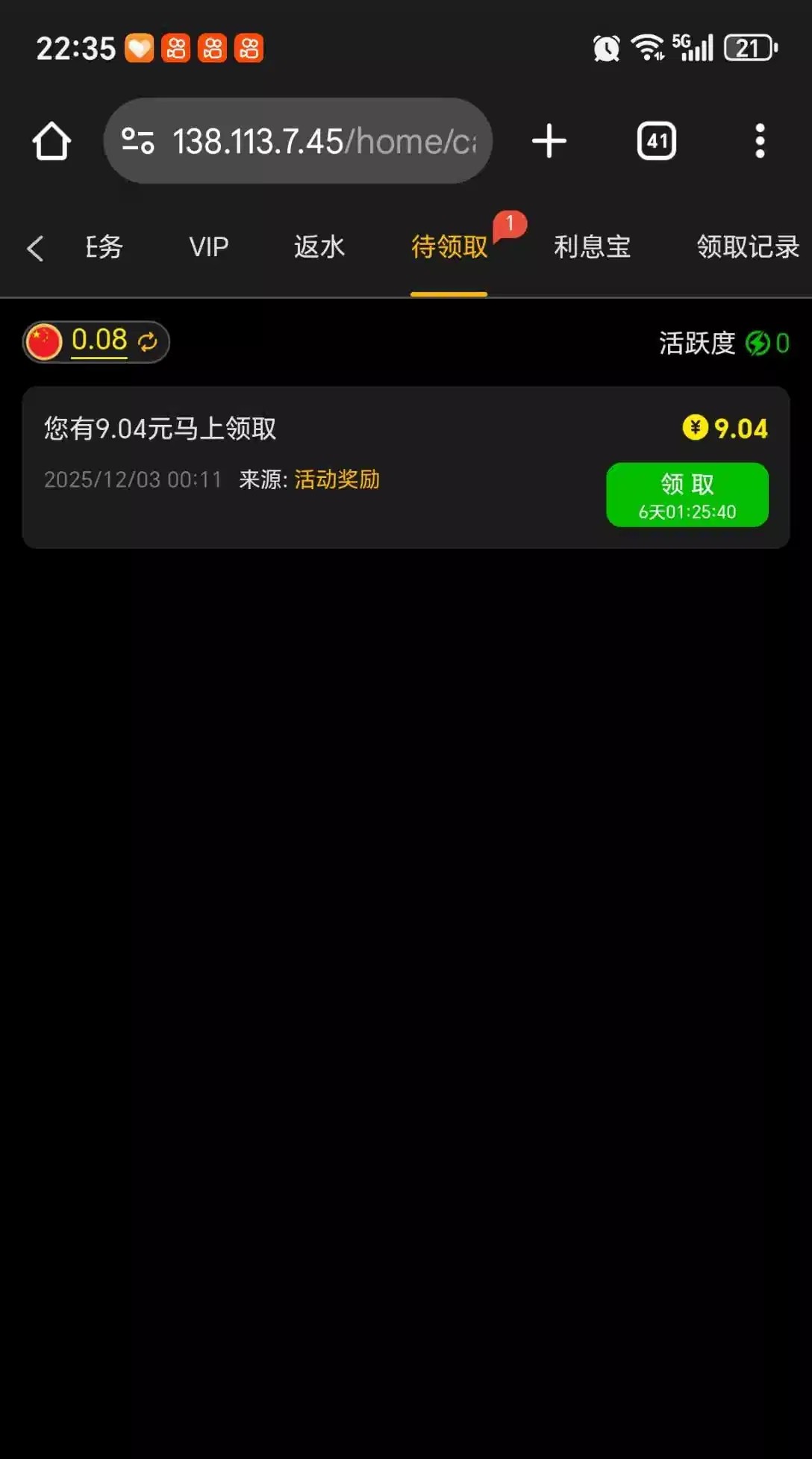 充值过一分没给