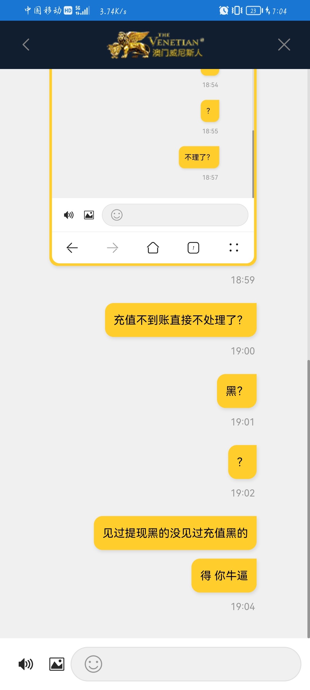 牛逼      进入网络娱乐这么多年      没受过这种气          充值直接黑