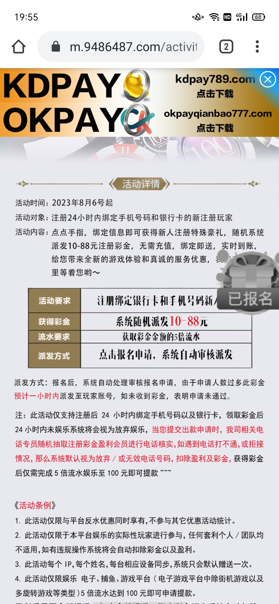 注册绑卡优惠里自助领取彩金,秒到,五倍水,满100提。