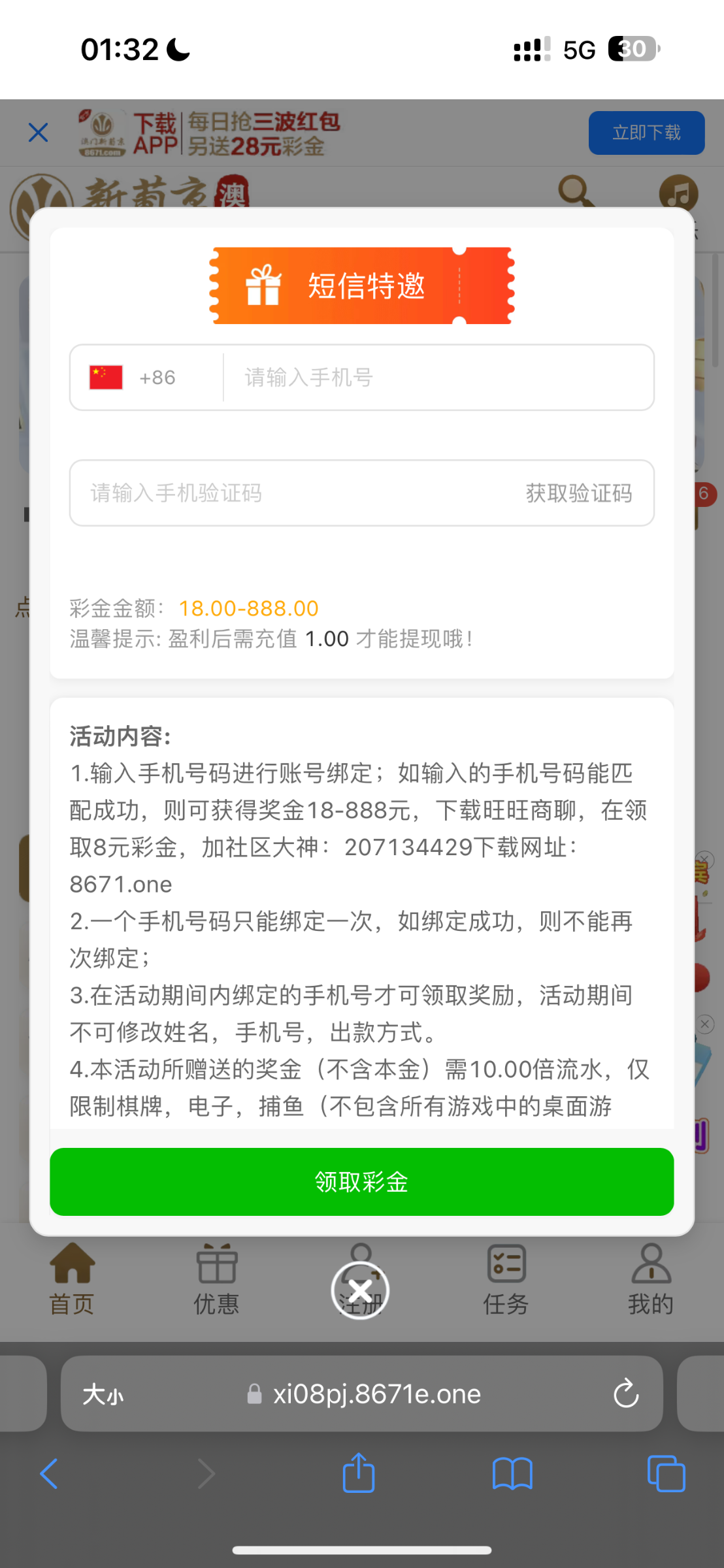 特邀送18-888,已经有老哥反馈出款了没试过的去试试,提现需要充值1块钱