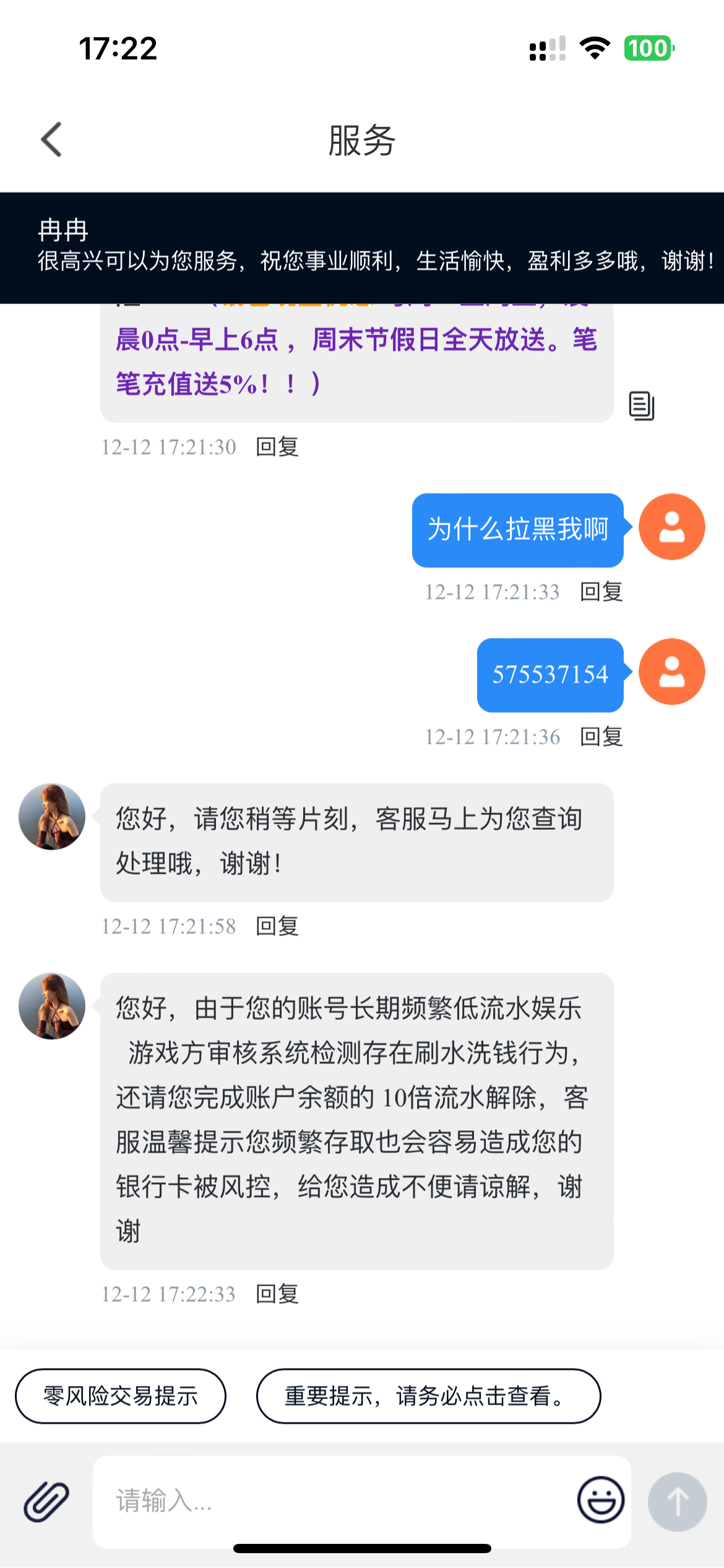 黄播平台真的垃圾,这两年被黑不少,今天充值1200提现1500直接拉黑提现,问客服,客服讲是什么涉嫌洗钱,把我逗笑了,罚我十倍打码,进去没一会儿全输完了,大家少玩点这种平台吧,唉,后面又玩其他平台想着把输的本金打回来 结果前前后后输了六千块,全输完了又去借网贷,真的心寒,现在已经在找厂上班了